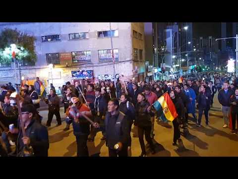 Video 6 de noviembre 2019, los maestros marchan con teas protestando contra Evo Morales